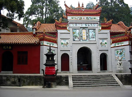 在岳麓山半腰,系晉初古寺,是佛教人湘最早的一所大寺。明神宗時(shí) 更名為萬壽寺,民國(guó)初年復(fù)名,古麓山專。唐代大詩(shī)人杜甫曾用“寺門高開 洞庭野,殿腳插入赤沙湖”的詩(shī)句稱頌殿字宏大。大雄寶殿等主要建筑,于 1944年被炸毀,僅存山門和觀音閣,現(xiàn)已修整一新.山門上有“古麓出寺” 的橫額,兩旁為“漢魏最初名勝,湖湘第一道場(chǎng)"對(duì)聯(lián),門外古楓參天,濃 蔭覆蓋,門內(nèi)園圃百花爭(zhēng)艷。觀音閣為磚木結(jié)構(gòu),1955年曾加以修葺,1980 年再次修整恢復(fù)原貌,并在廳堂神龕中置觀音像。閻內(nèi)常舉辦小型書畫展 覽。觀音閣前有兩株羅漢松,左邊一株是六朝遺跡,稱“六朝松",樹 齡在1700年以上, 是岳麓山植物界的"元老", 老干新枝,紛繁翁 郁,彌足珍貴;右邊一株于清代被巨風(fēng)拔去并被清代人補(bǔ)植。兩棵古松 并峙于閣前,游人樹下經(jīng)過,若入關(guān)隘,故有“關(guān)松"之稱。