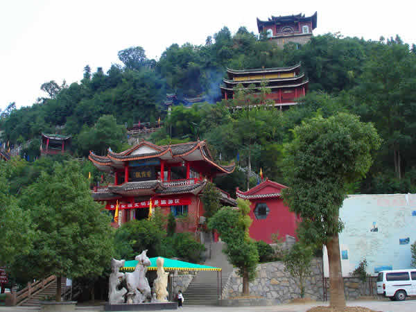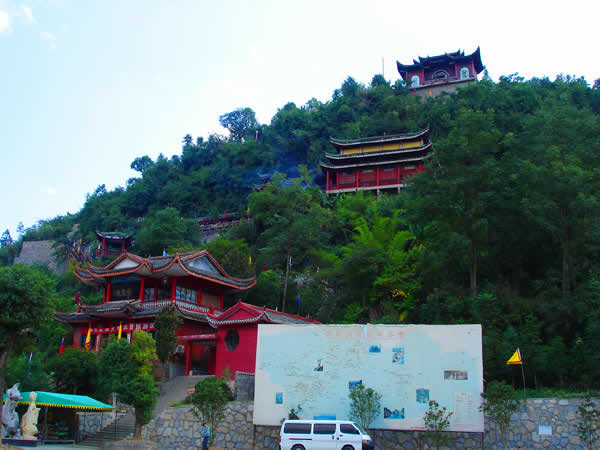 紫霞觀 紫霞觀始建于明朝嘉靖年間,近500年的歷史,在戰(zhàn)亂時(shí)期收到不同程度的破壞。紫霞觀是1992年因旅游事業(yè)的發(fā)展,教徒的信教,經(jīng)政府的批準(zhǔn),由各地的善男信女共同捐資,當(dāng)?shù)卣畵芸顢U(kuò)建起來(lái)的。道觀共有大小殿廟30余座,計(jì)5殿、3宮、2亭、2廟、1閣、八仙山、仙人足跡石、中華同心鎖等景點(diǎn)。中國(guó)著名書法家沈鵬先生為紫霞觀題寫了觀名,觀內(nèi)有國(guó)內(nèi)外著名書法家的題詞、碑刻等宗教文物,以及老子教祖講經(jīng)說(shuō)法渡化圖一百余幅。