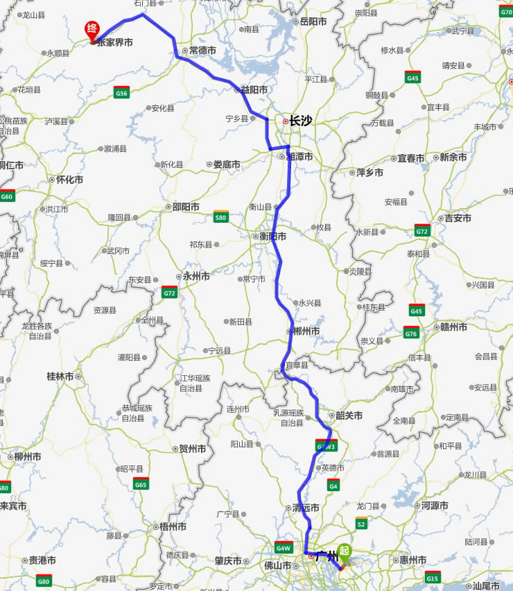 寧海去張家界自駕車自助游線路圖全程高速):