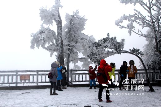 天門山夢幻雪景引游人無數