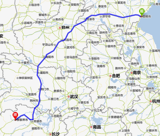 日照去張家界自駕車自助游線路圖全程高速):