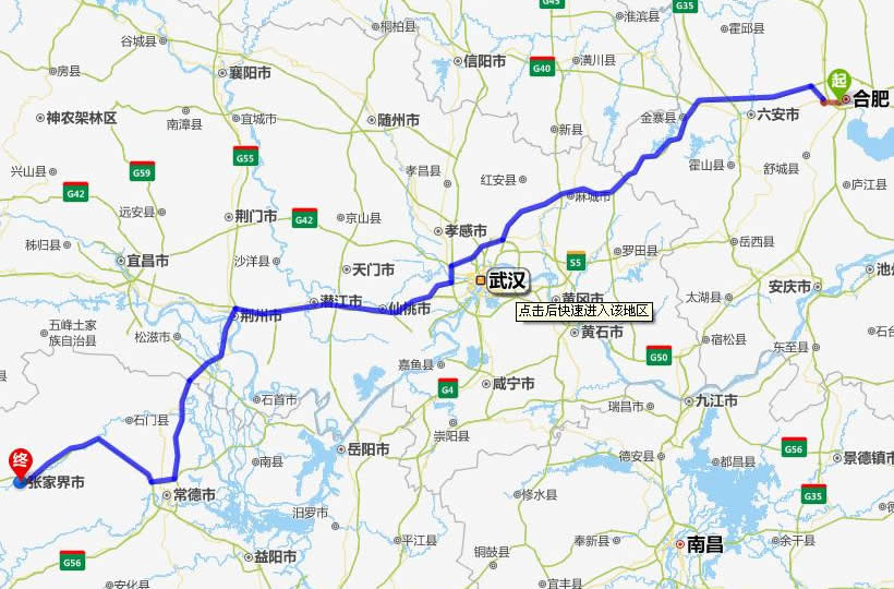 銅陵去張家界自駕車自助游線路圖全程高速):